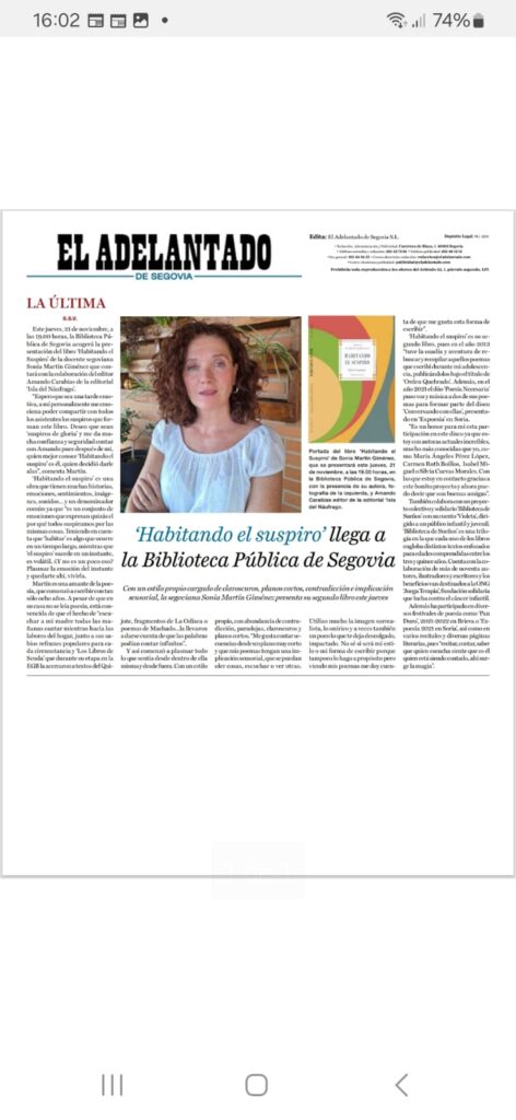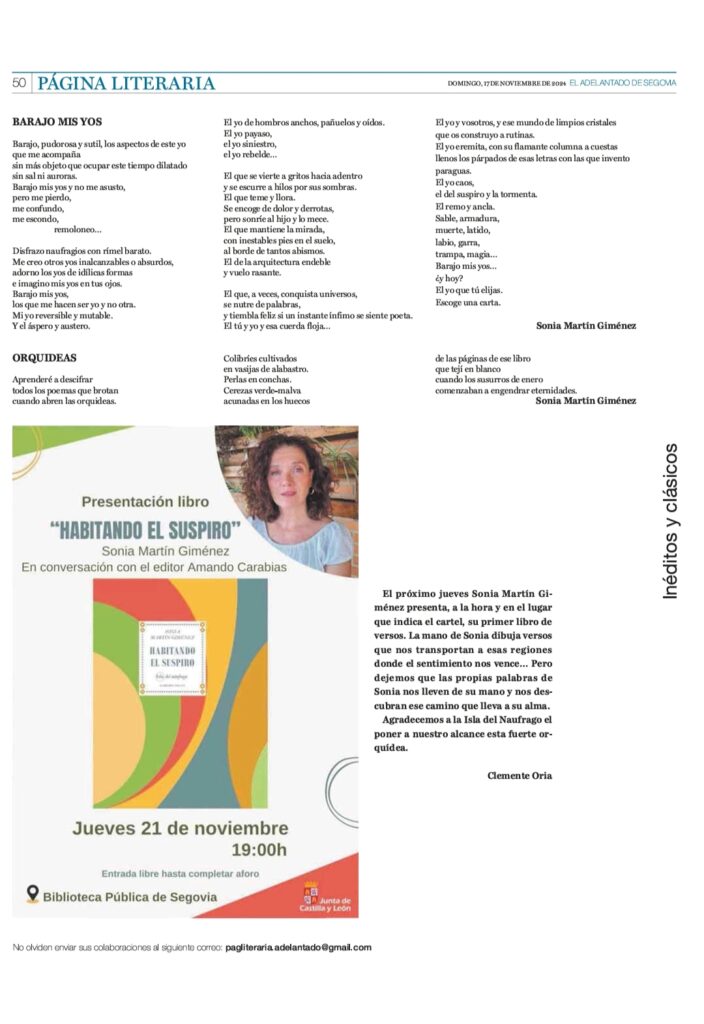 «Invito con este poemario (más allá del pudor, la duda, la incertidumbre o el miedo que causa mostrarse) a asomarse a mi suspiro, pasear su superficie e incluso, como yo misma, a habitarlo; a serlo» afirma Sonia Martín Giménez en una brevísima introduccón al poemario que se abre con el poema que aquí dejamos. Si lo hacéis, no os defraudará este viaje: